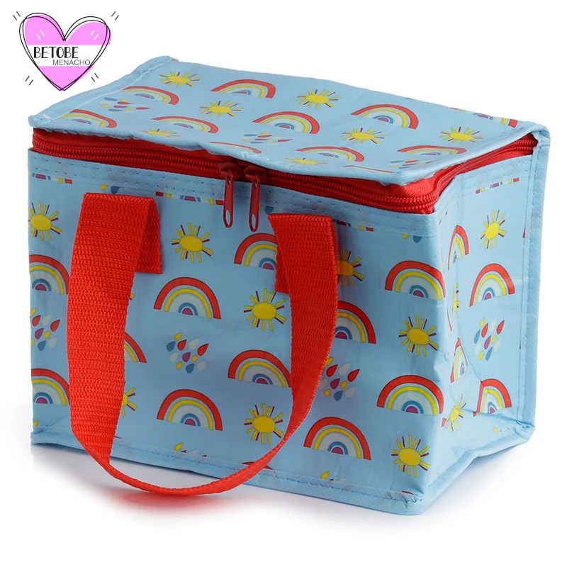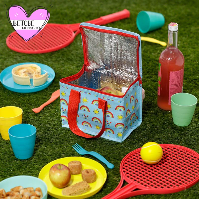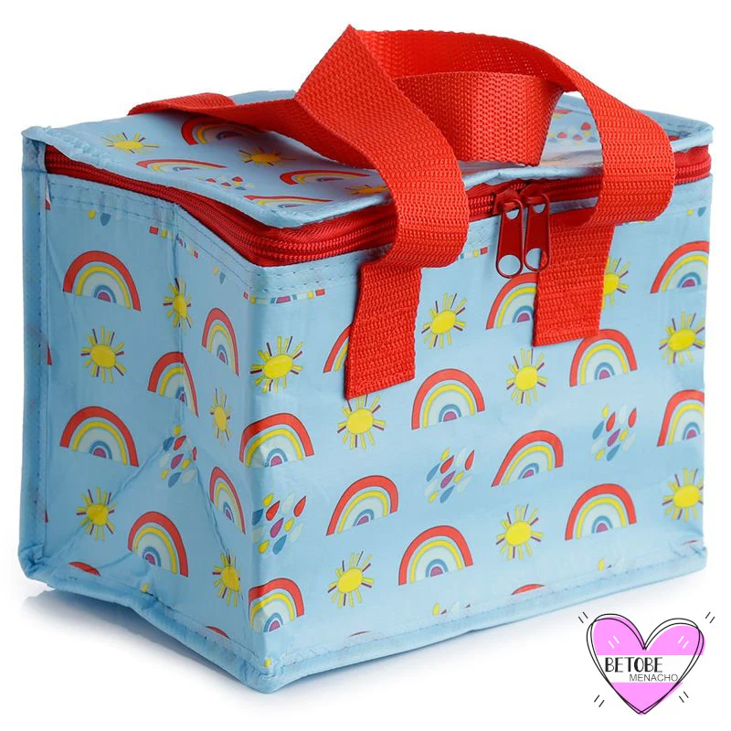 Ocupando un lugar privilegiado en la nevera de la oficina, su bolsa para merienda con aislamiento de aluminio y decorada con bonitos arcoíris. Lo suficientemente grande para sándwiches y bocadillos, ¡no se pierda este elemento esencial para el almuerzo! La bolsa está hecha de materiales reciclados.